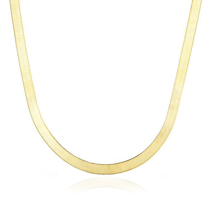 This Large Herringbone Necklace by The Lovery is an elegant and eye-catching piece, perfect for layering or wearing solo. Made of 14K gold, it features a sleek design that catches the light with every movement. Please note that herringbone chains are fragile and must be worn flat.