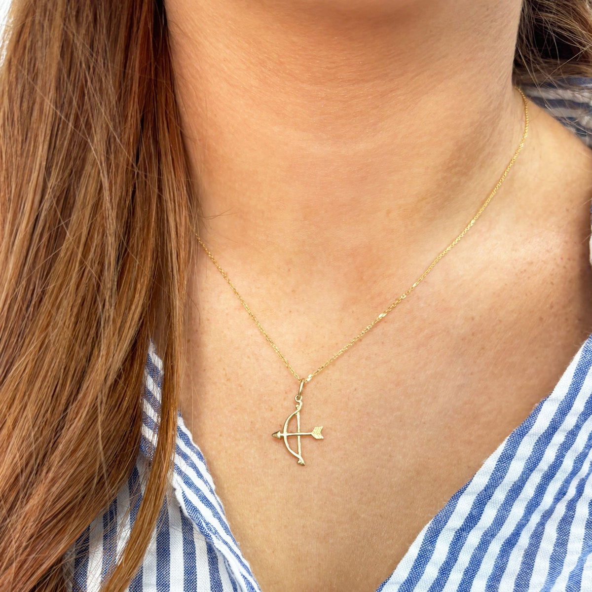 This Mini Gold Bow and Arrow Charm by The Lovery symbolizes adventure and love. Its delicate design makes it a great addition to any charm bracelet or necklace.
