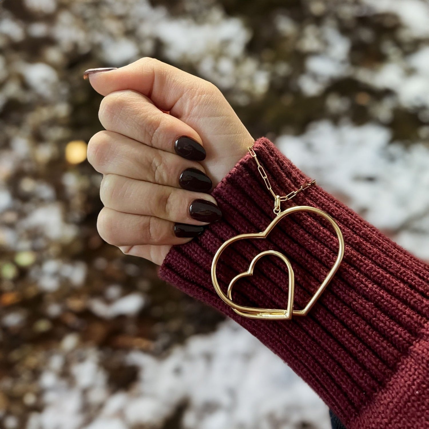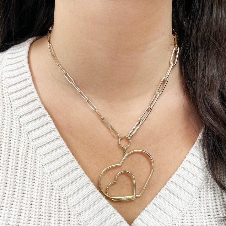 This Extra Large Gold Double Open Heart Charm by The Lovery is a show-stopping statement piece. The large gold heart charm, measuring 2.24 inches, is perfect for layering with other necklaces or wearing on its own. Made from 14K Yellow Gold, this charm symbolizes love and connection.