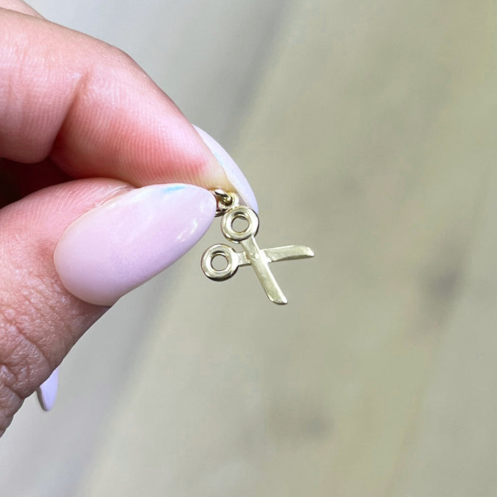 14K yellow gold. Scissor charm measures 9 x 21mm (0.35 x 0.82 inches). This piece is identical on both sides.