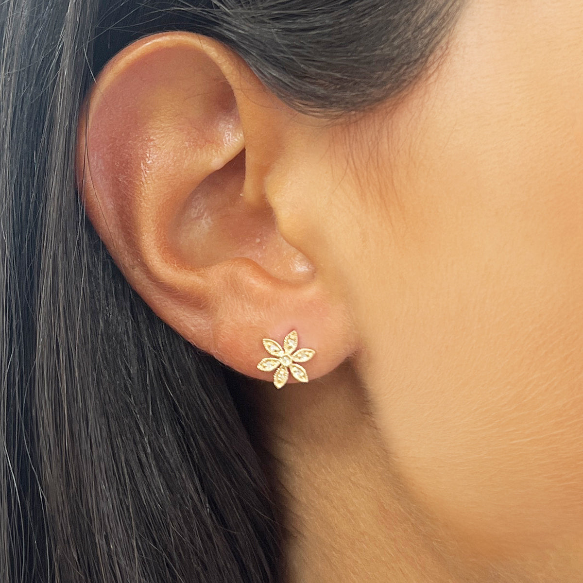 Diamond Flower Stud Earrings