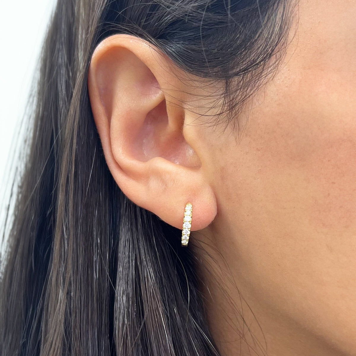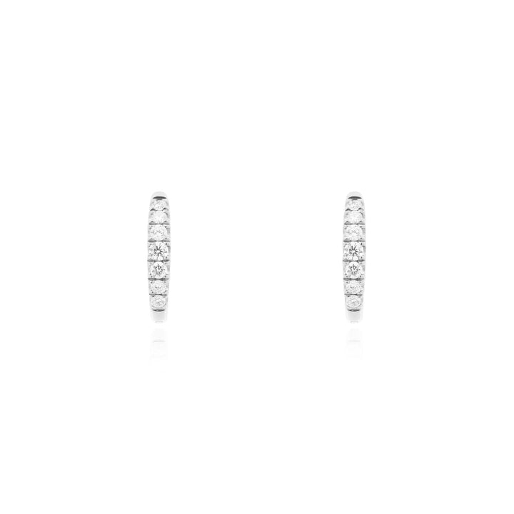 These Diamond Huggie Earrings by The Lovery are designed for everyday elegance. Set in 18K gold, these earrings feature 14 round brilliant white diamonds, totaling 0.23 carats. The 12.5mm size makes them perfect for adding subtle sparkle to any look.