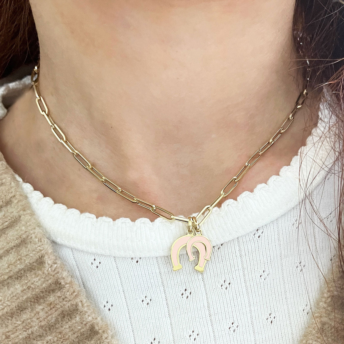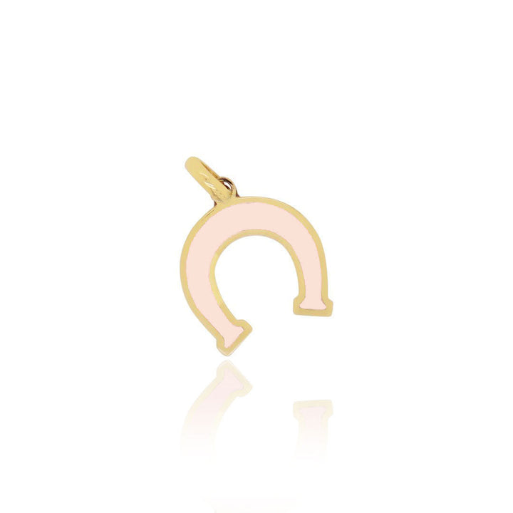 This Pink Pearl Horseshoe Charm 12mm by The Lovery is a stunning piece that combines the beauty of 14K yellow gold with the soft glow of a pink pearl. The horseshoe shape symbolizes luck, while the symmetrical design ensures that the charm looks beautiful from any angle. This piece is perfect for adding a meaningful touch to any chain or bracelet.