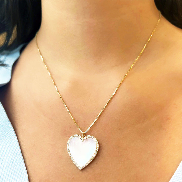 Large Mother Of Pearl Diamond Heart Charm