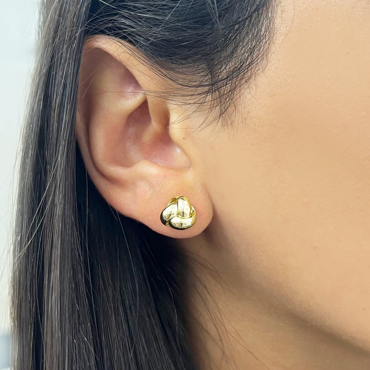 These Polished Gold Knot Stud Earrings by The Lovery are the ultimate accessory for adding flair to your everyday look. Crafted in 14K yellow gold, these 9mm knot studs offer a refined and polished design that exudes elegance and timelessness.