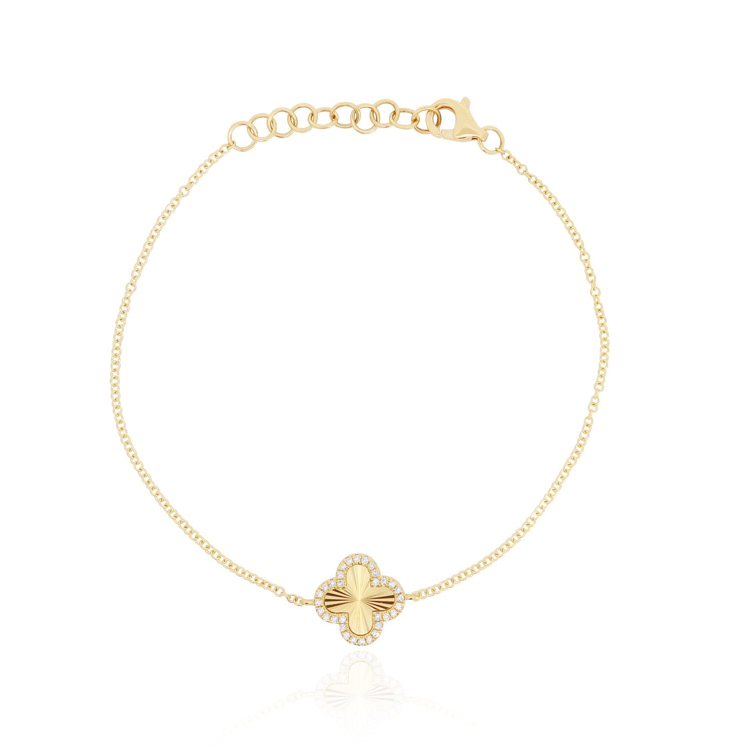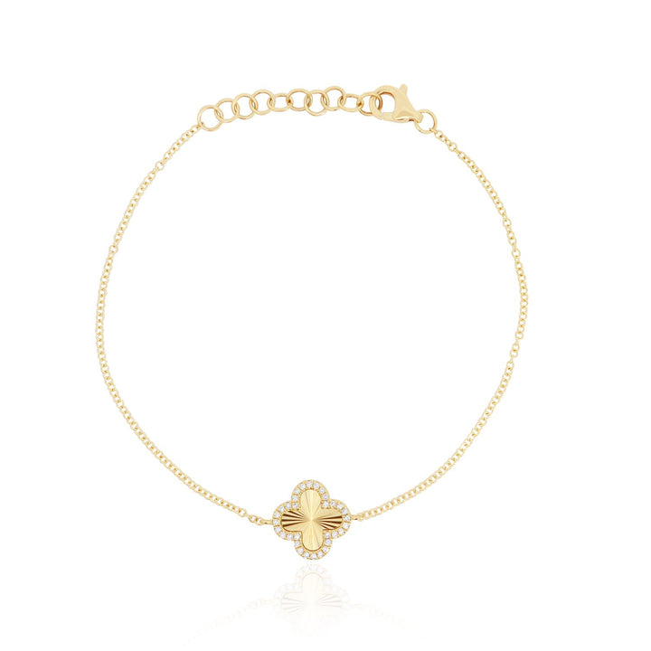Fluted Gold Diamond Halo Clover Bracelet