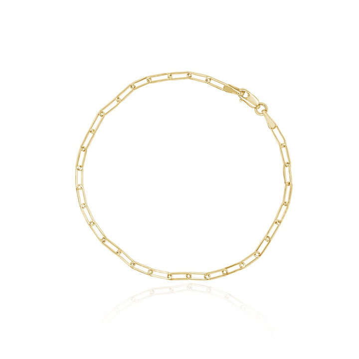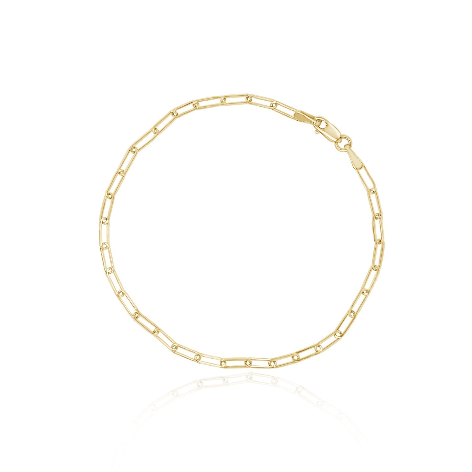 This Mini Paperclip Bracelet by The Lovery is a perfect addition to your collection. It offers a trendy yet timeless design, making it easy to layer with other pieces or wear solo. The semi-hollow Italian yellow gold links add a luxurious touch, and the adjustable length ensures the perfect fit.