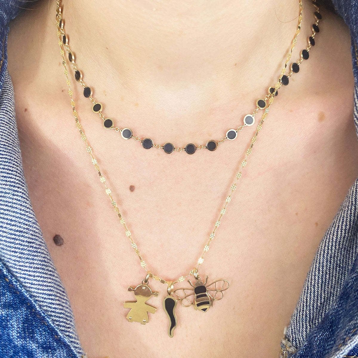 This Onyx Queen Bee Charm by The Lovery is buzzing with charm! Crafted in 14K yellow gold, this onyx charm features an intricate bee design, symbolizing power and royalty. Perfect for anyone who wants to embrace their inner queen bee.