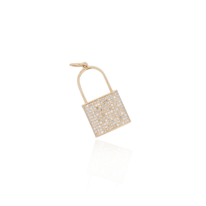 This Diamond Padlock Charm by The Lovery offers ultimate protection with its sparkling design. Featuring 0.59 carats of round brilliant white diamonds, this charm is set in 14K yellow gold and is the perfect blend of elegance and strength.
