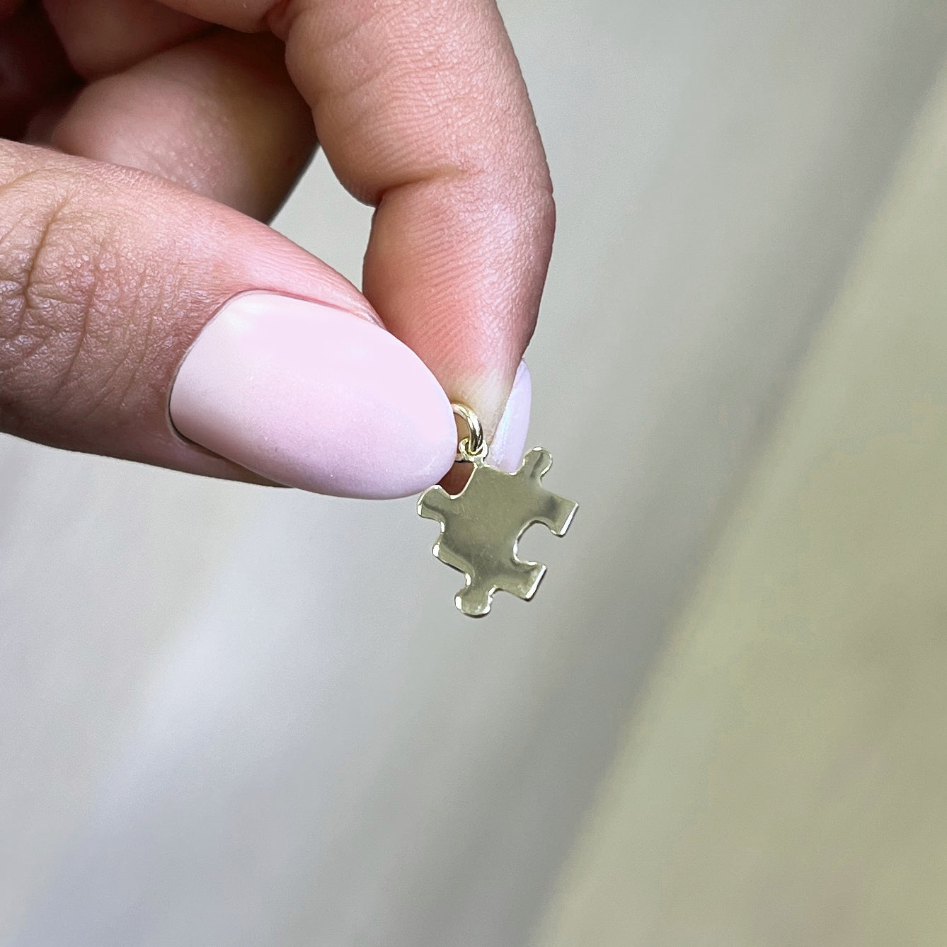 14K yellow gold. Gold puzzle piece measures 12 x 10mm (0.47 x 0.39 inches). Identical on both sides.