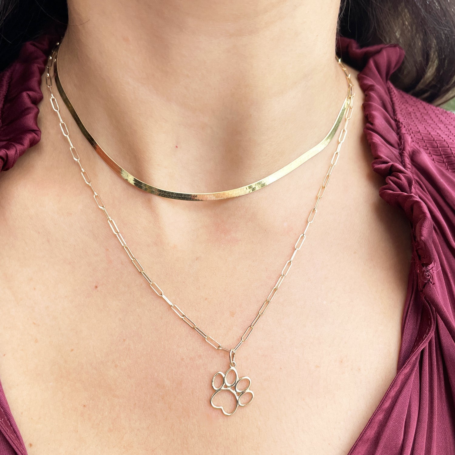 14K yellow gold. Paw charm measures 15 x 15mm (0.59 x 0.59 inches). This piece is identical on both sides.