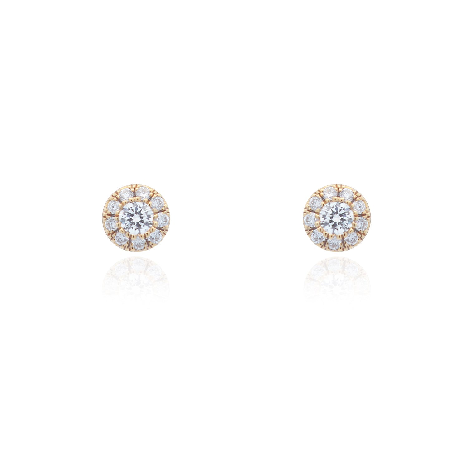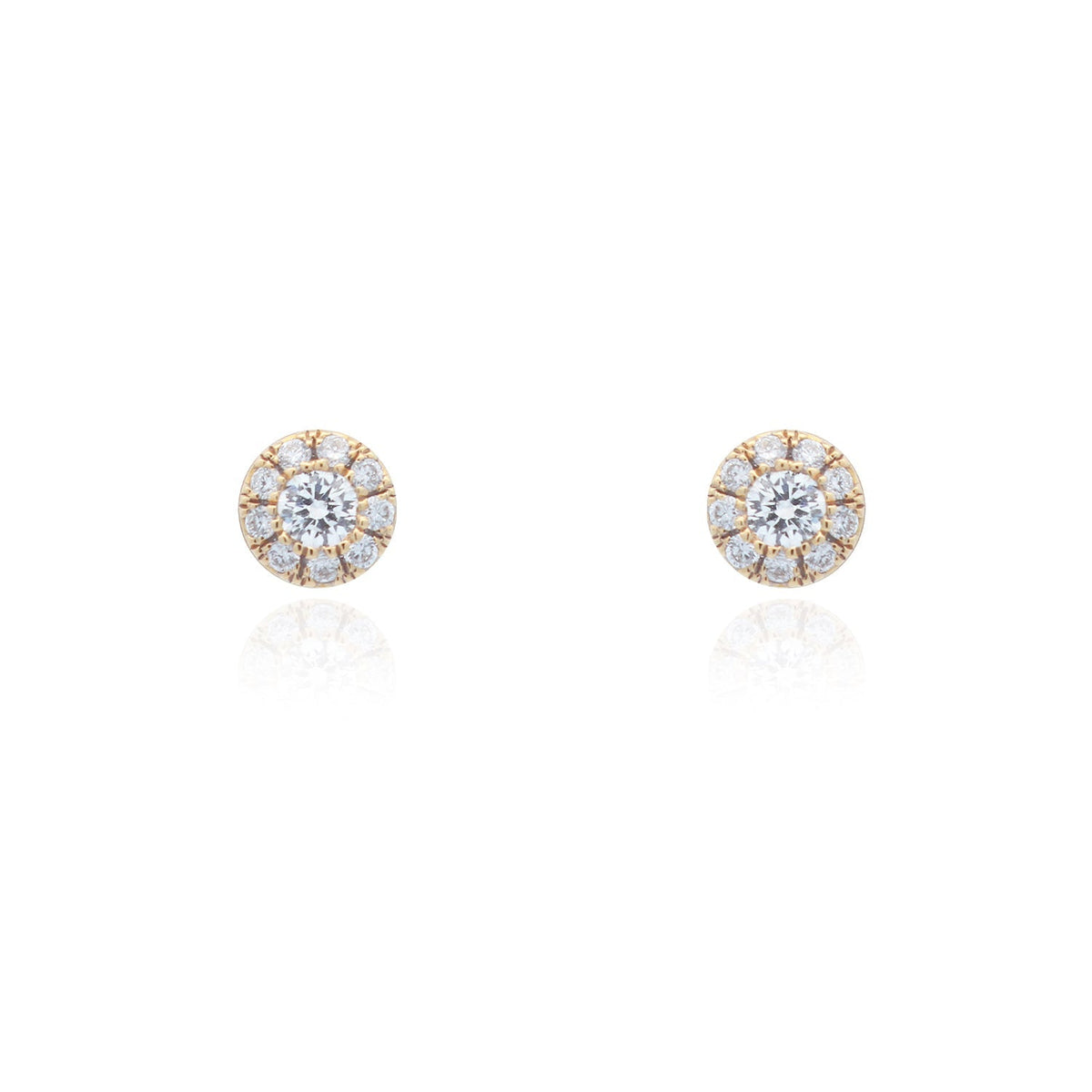 Made with 18K Gold and 20 Round Brilliant White Diamonds (0.19 Carats Total Weight, Color H-I, Clarity SI). Earring style: Stud. Circle measures 4.7 mm.