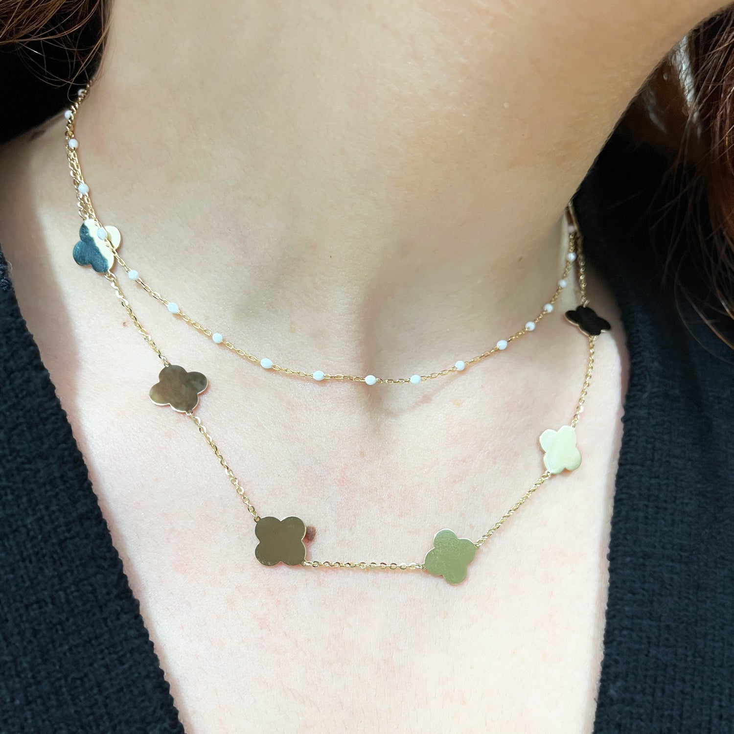 Crafted in 14K yellow gold, featuring white enamel beads. Necklace length: 16".