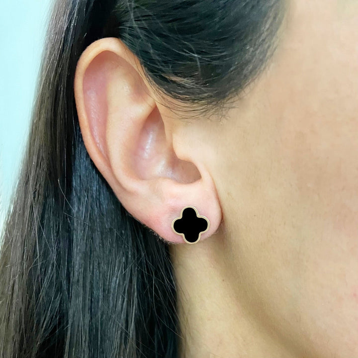 Small Onyx Clover Stud Earrings