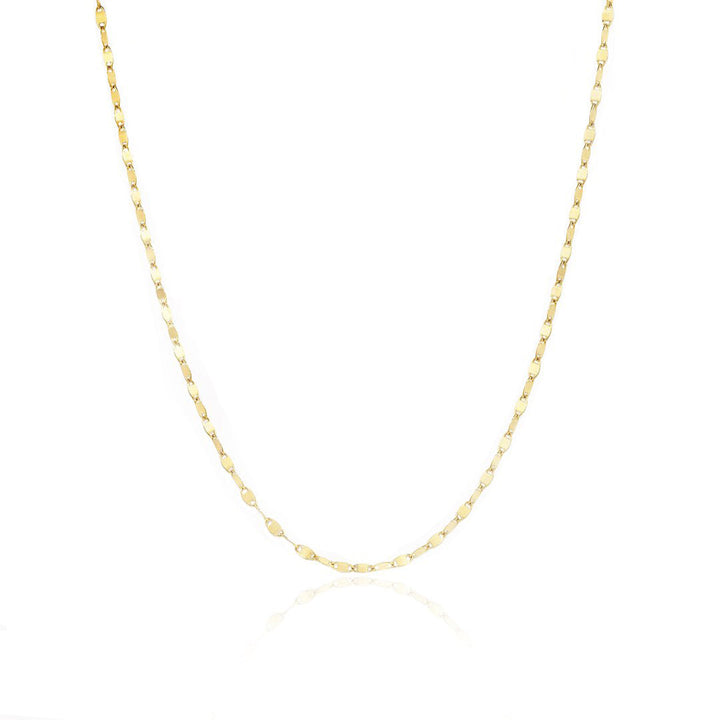 Crafted in 14K Gold with disco link chain. Necklace length: 18'. Rectangle lobster clasp. Each link measures 2.2mm.