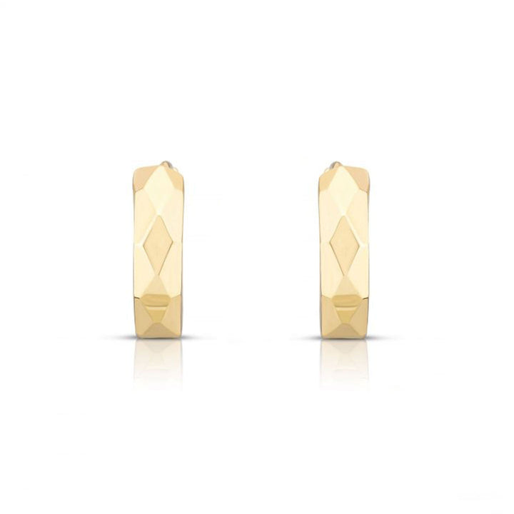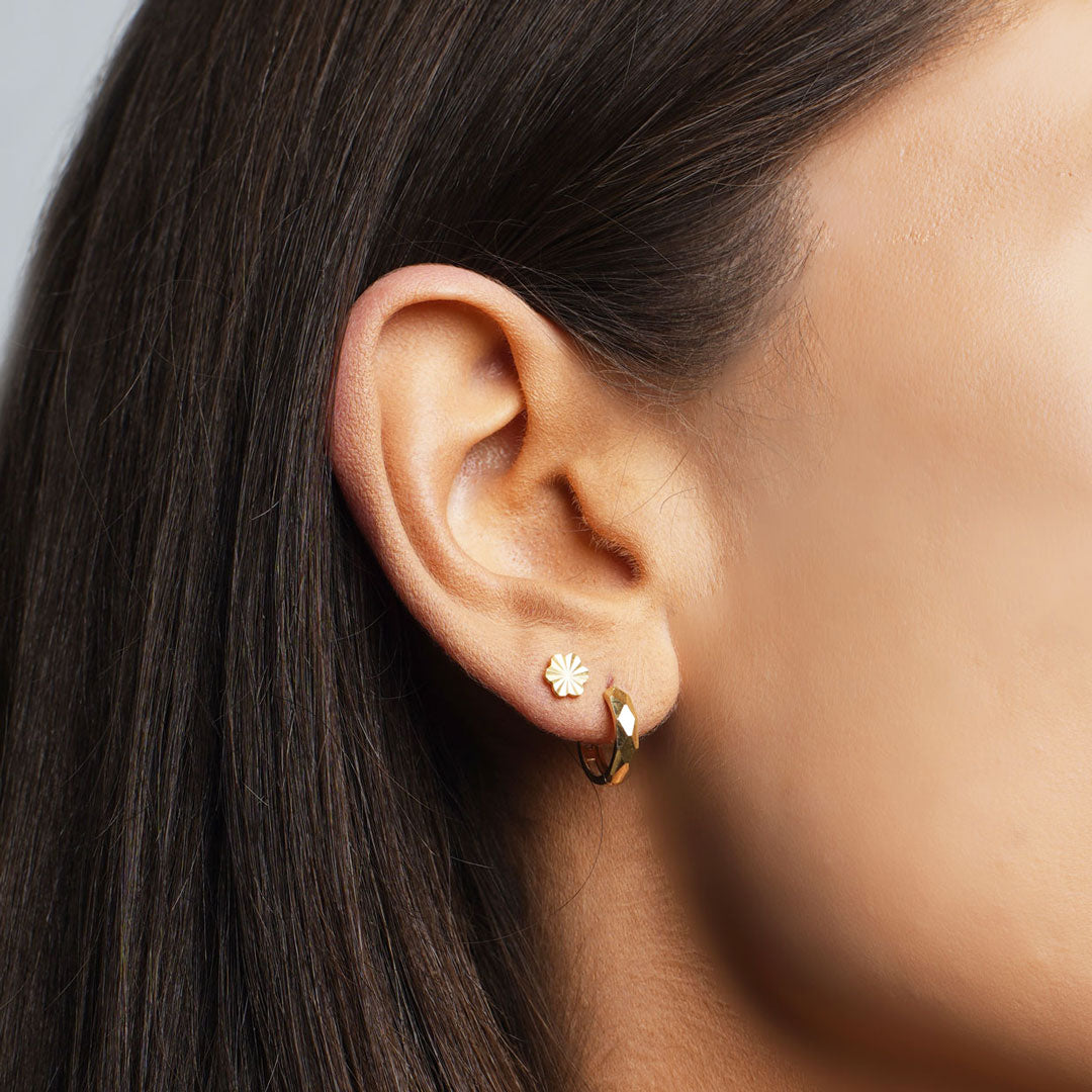 These Mini Faceted Gold Huggie Hoop Earrings by The Lovery are a simple yet elegant addition to your jewelry collection. The 14K Yellow Gold design features mini faceted details, making these huggie hoops perfect for a subtle yet eye-catching look.