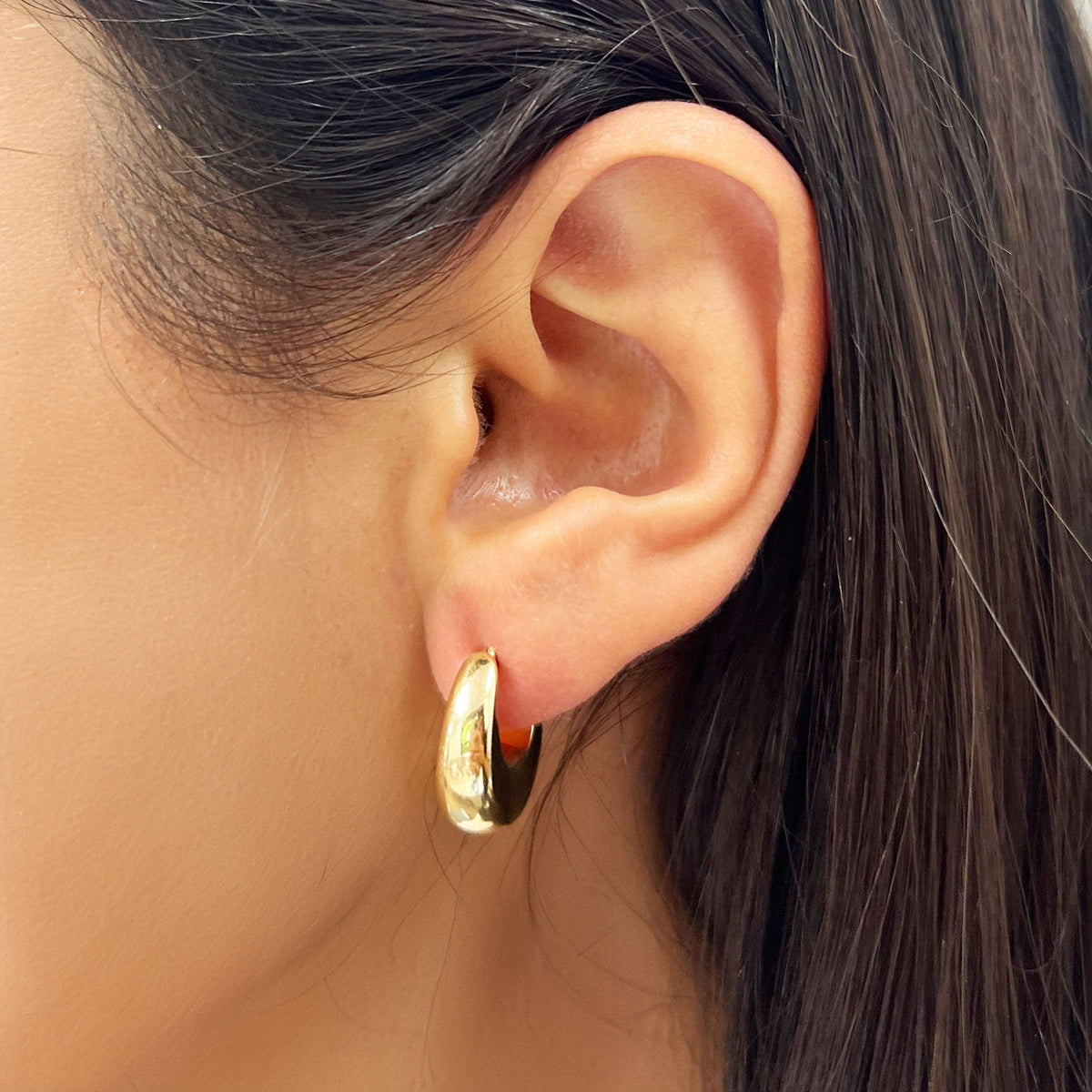 These Large Saddle Hoop Earrings by The Lovery are designed to elevate any look with their bold 14K yellow gold construction. Measuring 18mm x 16mm, these hoops offer a statement-making style with a sophisticated and timeless appeal. These earrings are perfect for adding a refined touch to your everyday or evening wear.