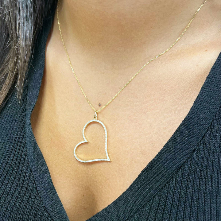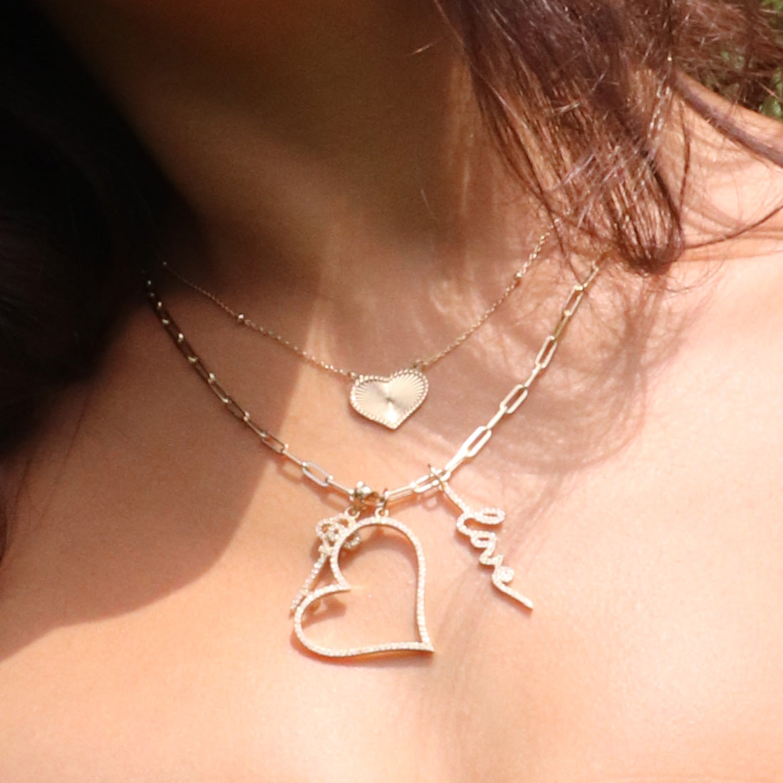 This Diamond Open Heart Charm by The Lovery is a romantic and elegant piece, perfect for adding a touch of sparkle to any chain. It features approximately 0.25 carats of round brilliant white diamonds set in 14K yellow gold, creating a striking and meaningful charm.