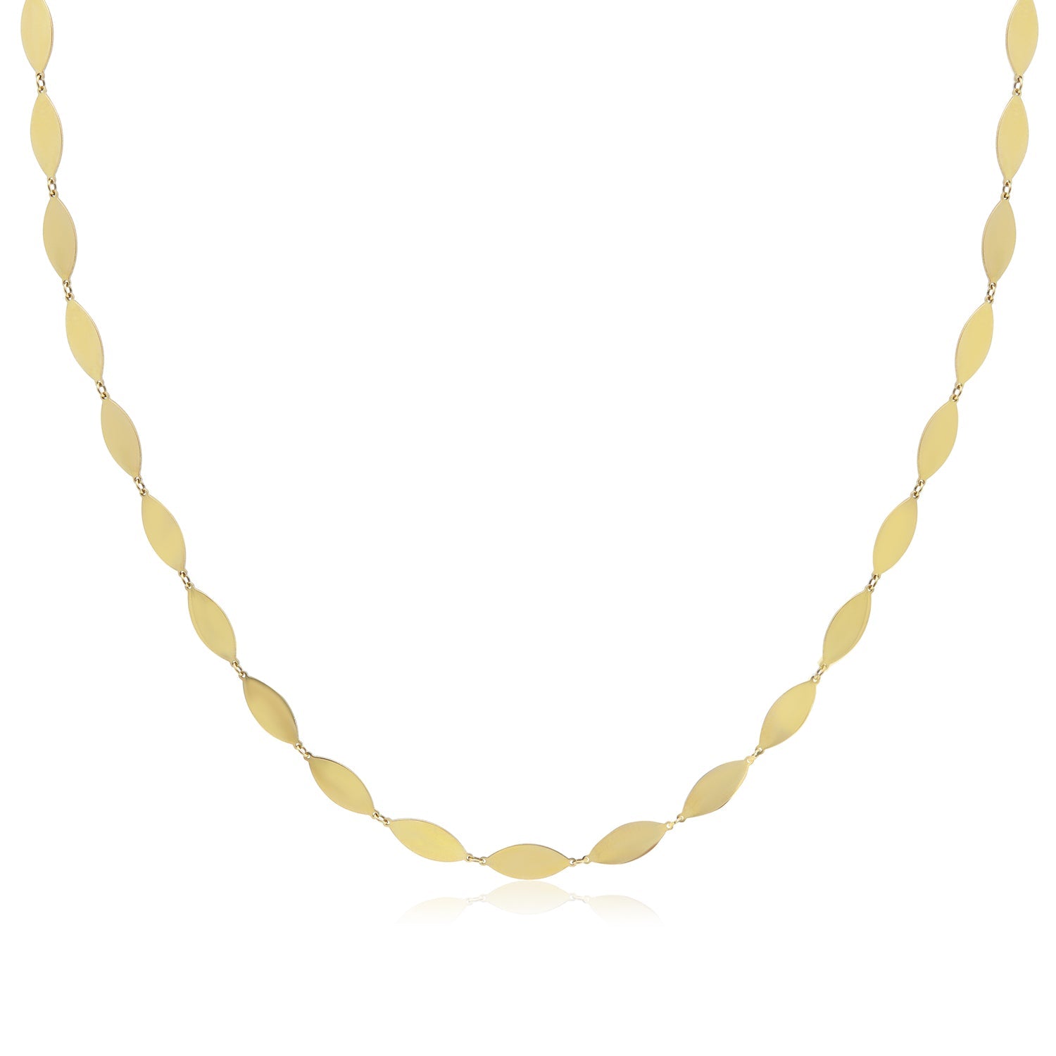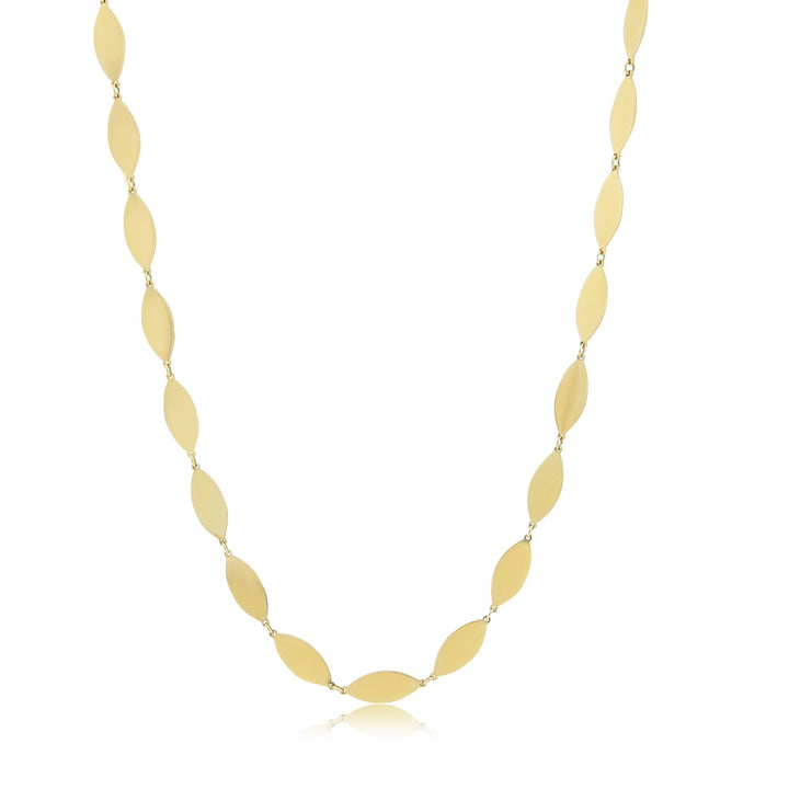 Crafted in 14K yellow gold, featuring 31 gold petals. Each petal measures 10 x 4mm. Chain length: 17.5 inches. Lobster clasp.