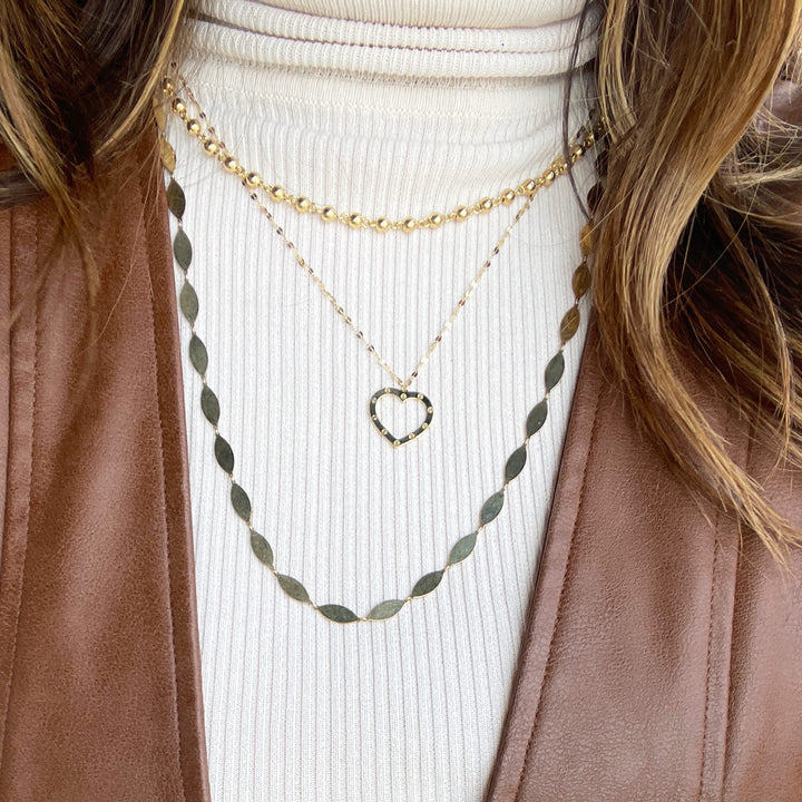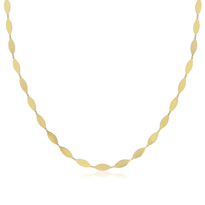 This Gold Petal Necklace by The Lovery is a stunning piece with 31 gold petals delicately arranged on a chain. Its simple elegance makes it perfect for layering or wearing solo.