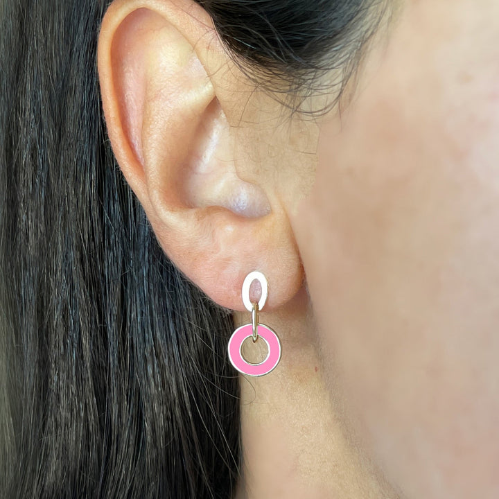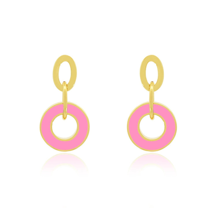Bubblegum Pink Enamel Round Link Drop Earrings
