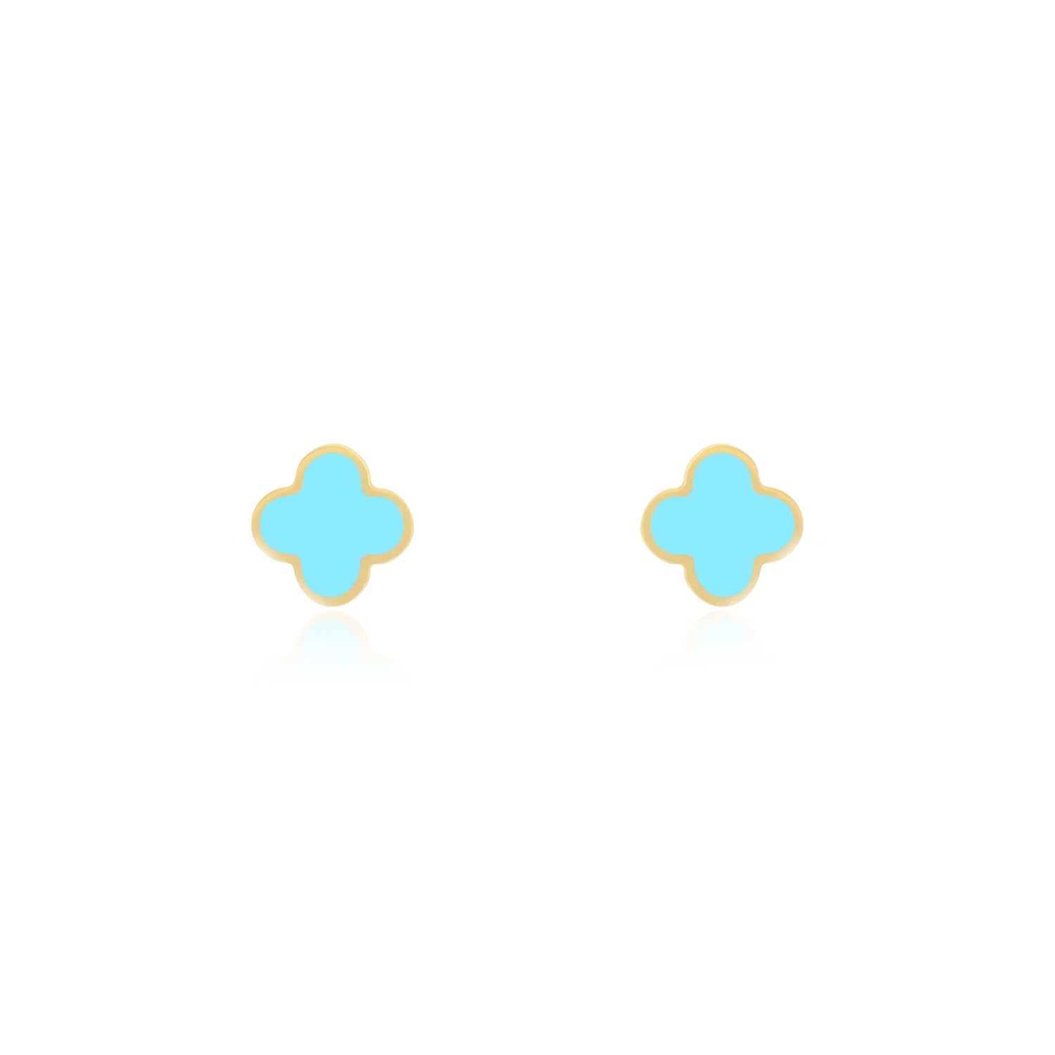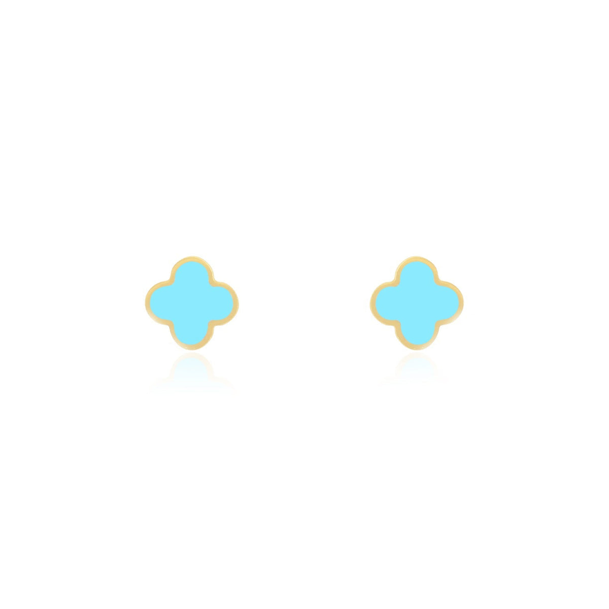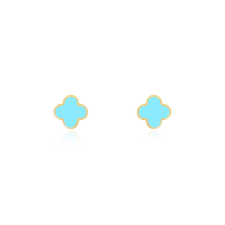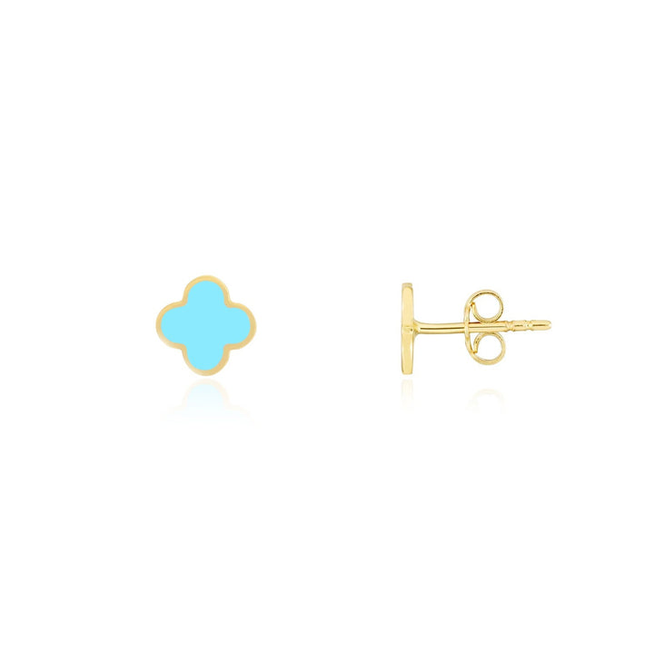 Made with 14K yellow gold and turquoise. Earring style: Stud. Clover measures: 7mm.