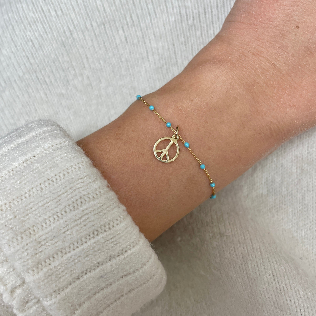 This Mini Gold Peace Charm by The Lovery is a meaningful and timeless piece that symbolizes peace and harmony. Whether layered with other charms or worn solo, this gold peace sign adds a symbolic touch to any jewelry collection.