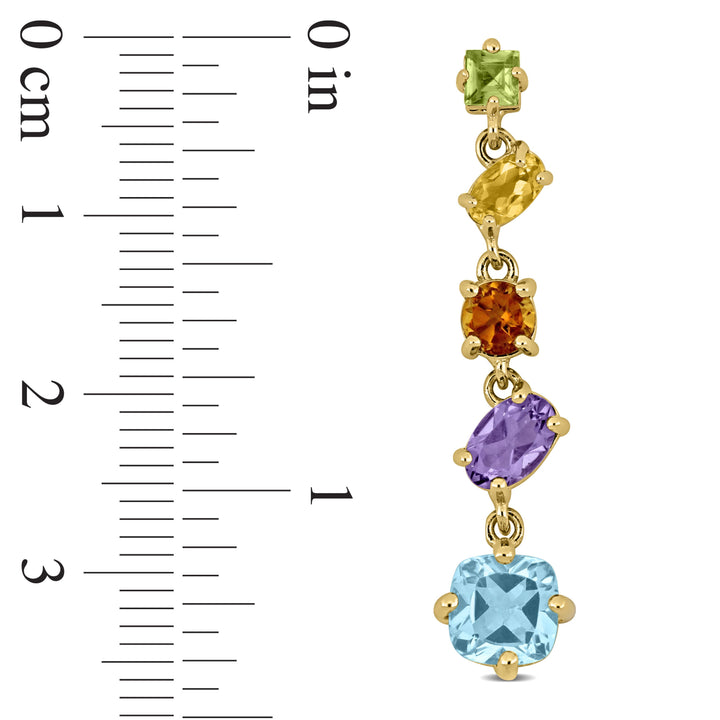 These Mimi & Max 4 1/2ct TGW Sky Blue Topaz Amethyst Citrine Peridot Earrings are a colorful statement piece, combining vibrant gemstones in yellow silver. These earrings feature a total gemstone weight of 4 1/2 carats.