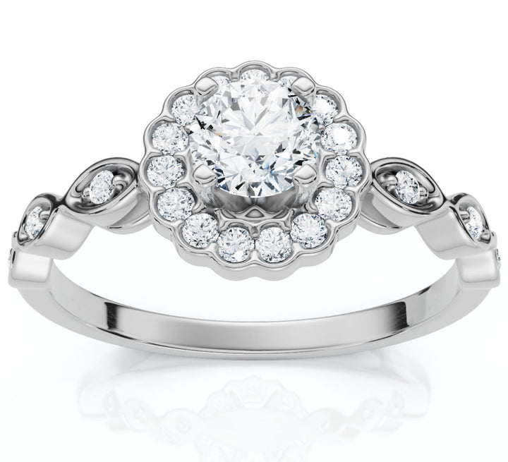 1ct Diamond Vintage Halo Engagement Ring 14k White Gold Lab Grown Size Selectable