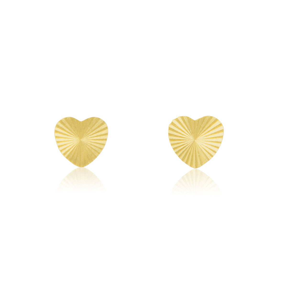 These Fluted Heart Stud Earrings by The Lovery are a perfect blend of charm and elegance. Crafted in 14K yellow gold, these 5mm heart-shaped studs are ideal for both little ones and adults alike, offering a timeless design that suits any occasion.