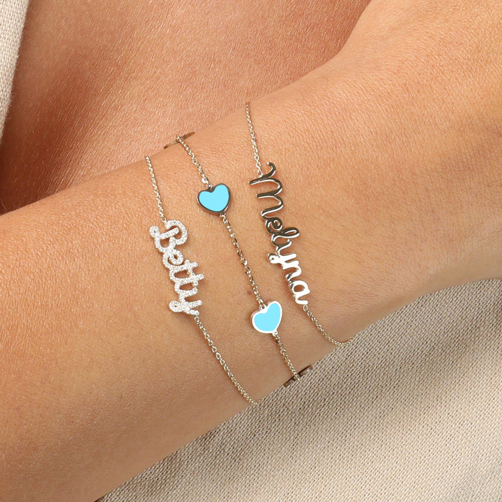 This Turquoise Heart Station Bracelet by The Lovery is the perfect way to wear your heart on your sleeve. Featuring 5 turquoise hearts set in 14k yellow gold, this bracelet can be worn on its own or stacked with other bracelets for a pop of color.