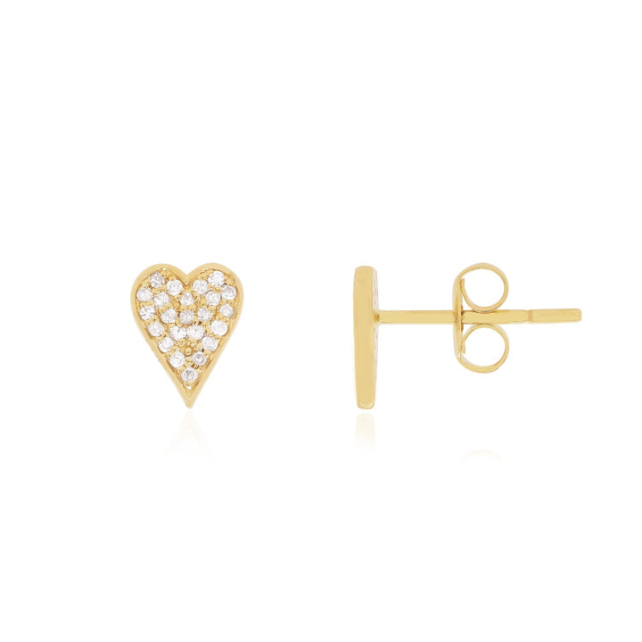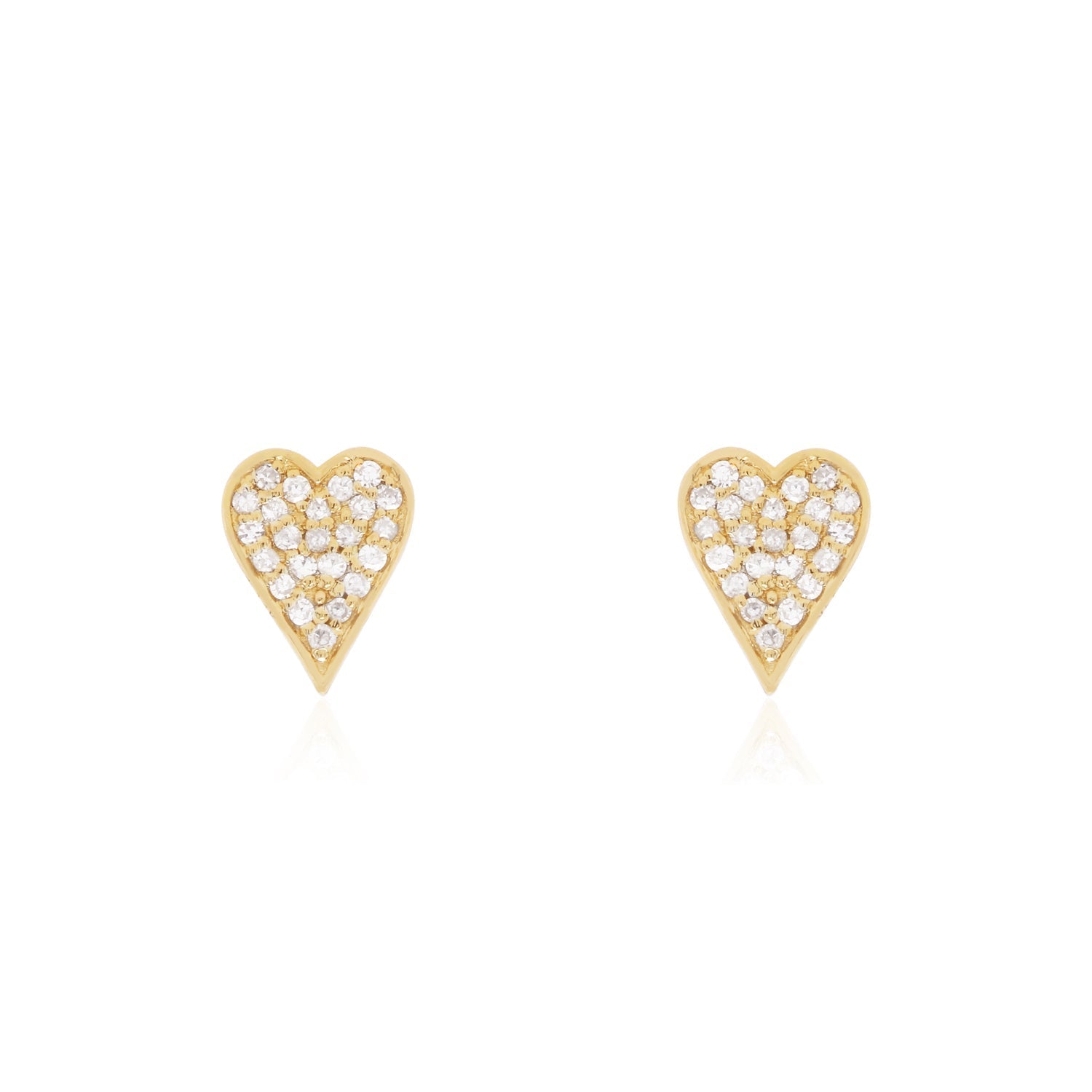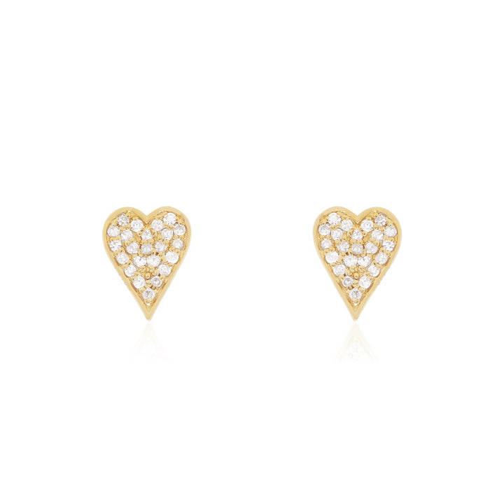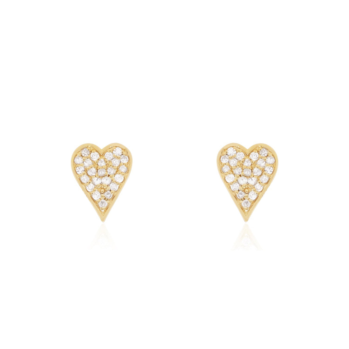 These Diamond Pave Heart Stud Earrings by The Lovery: These classic heart-shaped earrings are adorned with sparkling white diamonds, making them a symbol of love and affection. Set in 14K yellow gold, these heart studs are a timeless addition to your collection.