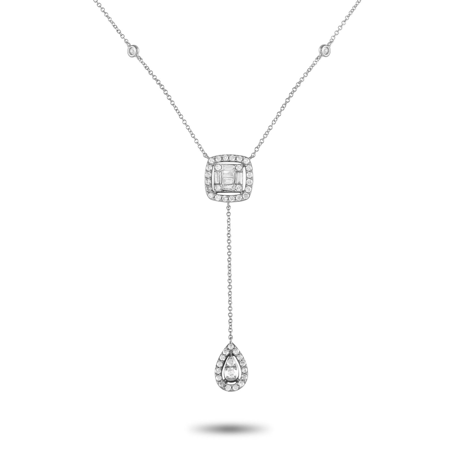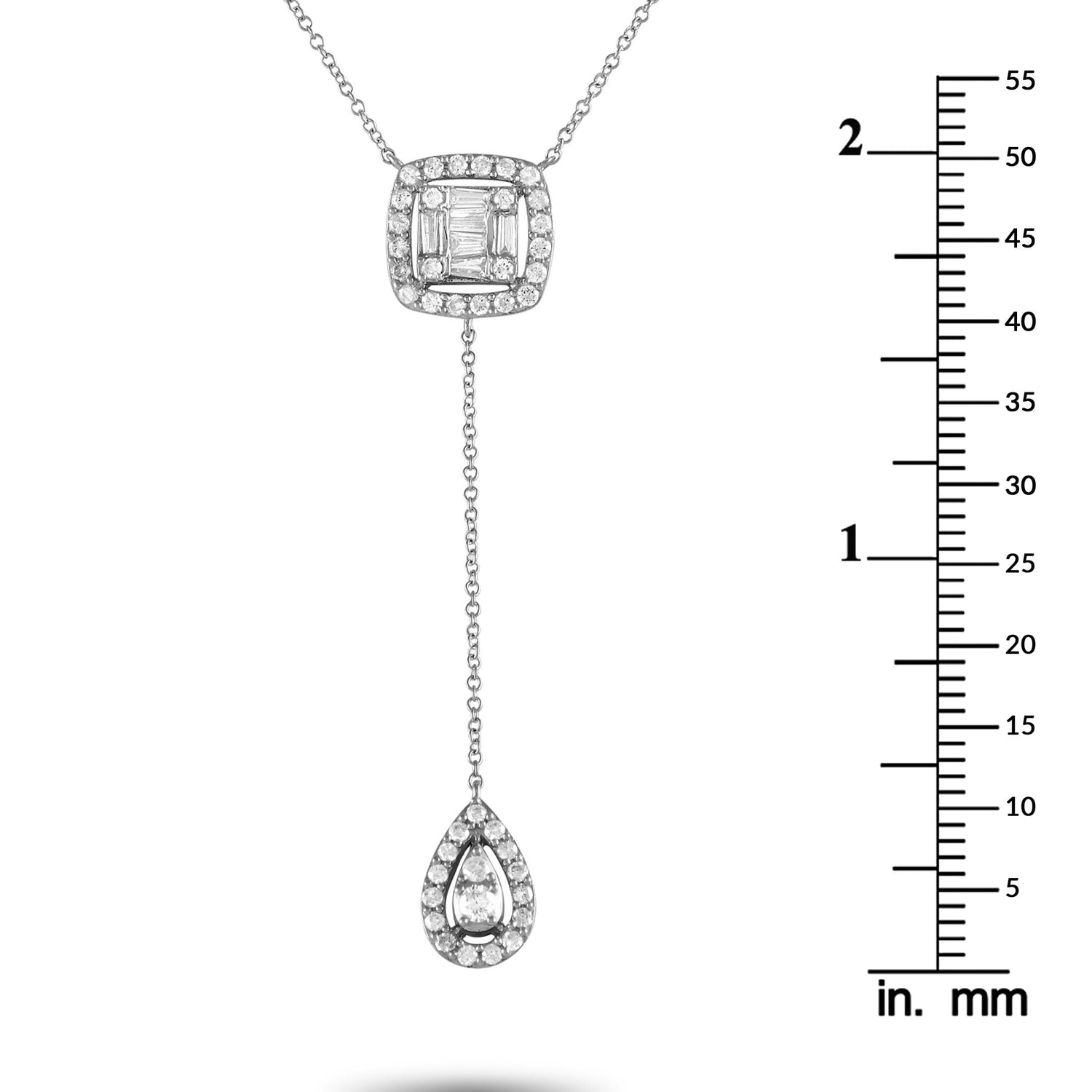 This LB Exclusive 14K White Gold 0.75ct Diamond Necklace by LB Exclusive exudes sophistication, perfect for making a statement on any occasion. The necklace features a 2.00-inch dangling pendant set with 0.75ct of diamonds, offering just the right amount of sparkle. Suspended from a 15-inch chain, the necklace blends classic elegance with a modern twist. Its timeless design ensures it stands out on its own or as part of a layered look.