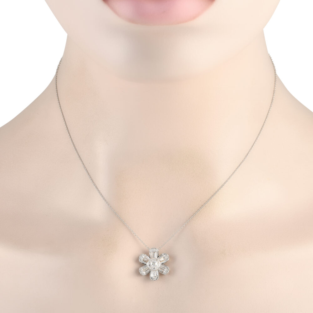 LB Exclusive 14K White Gold 0.80ct Diamond Flower Necklace NK01355