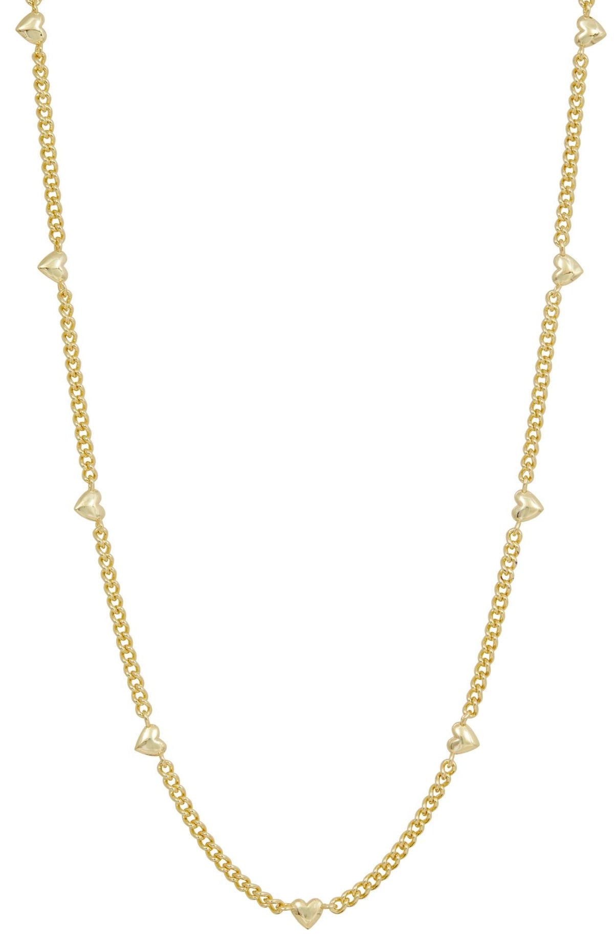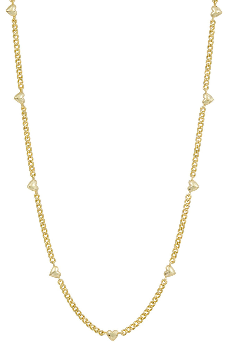 18K Gold Plated. Heart link stations. Necklace length: 18 inches.
