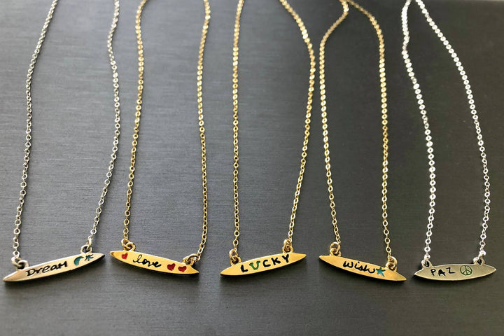 Women's Enamel Small Surfboard Necklace - Love In Vermeil