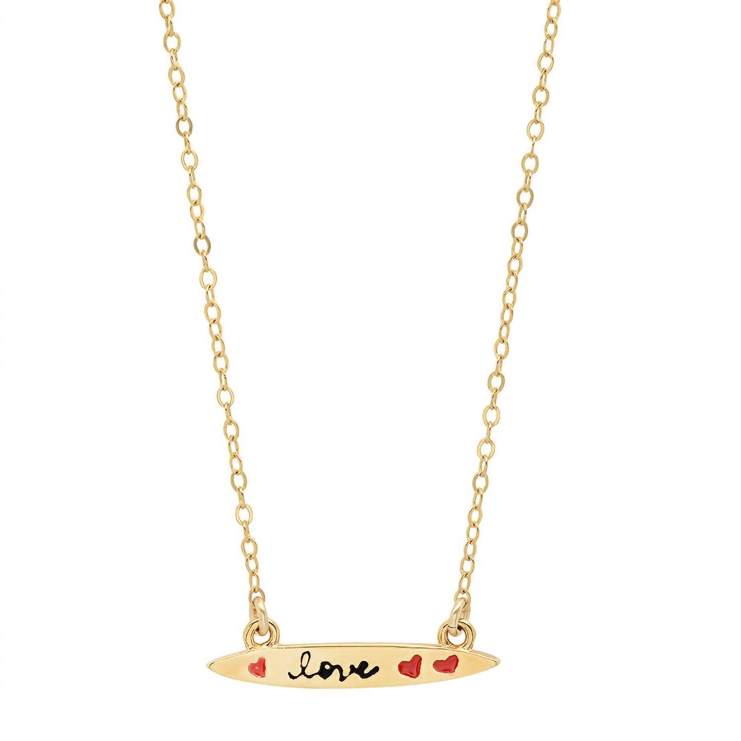 This Women's Enamel Small Surfboard Necklace - Love in Vermeil by Jessica Elliot is a playful and vibrant piece. Featuring a hand-enameled surfboard design, it can be layered or worn alone to create a fun, beach-inspired look. The adjustable chain (16' + 2') ensures a perfect fit.
