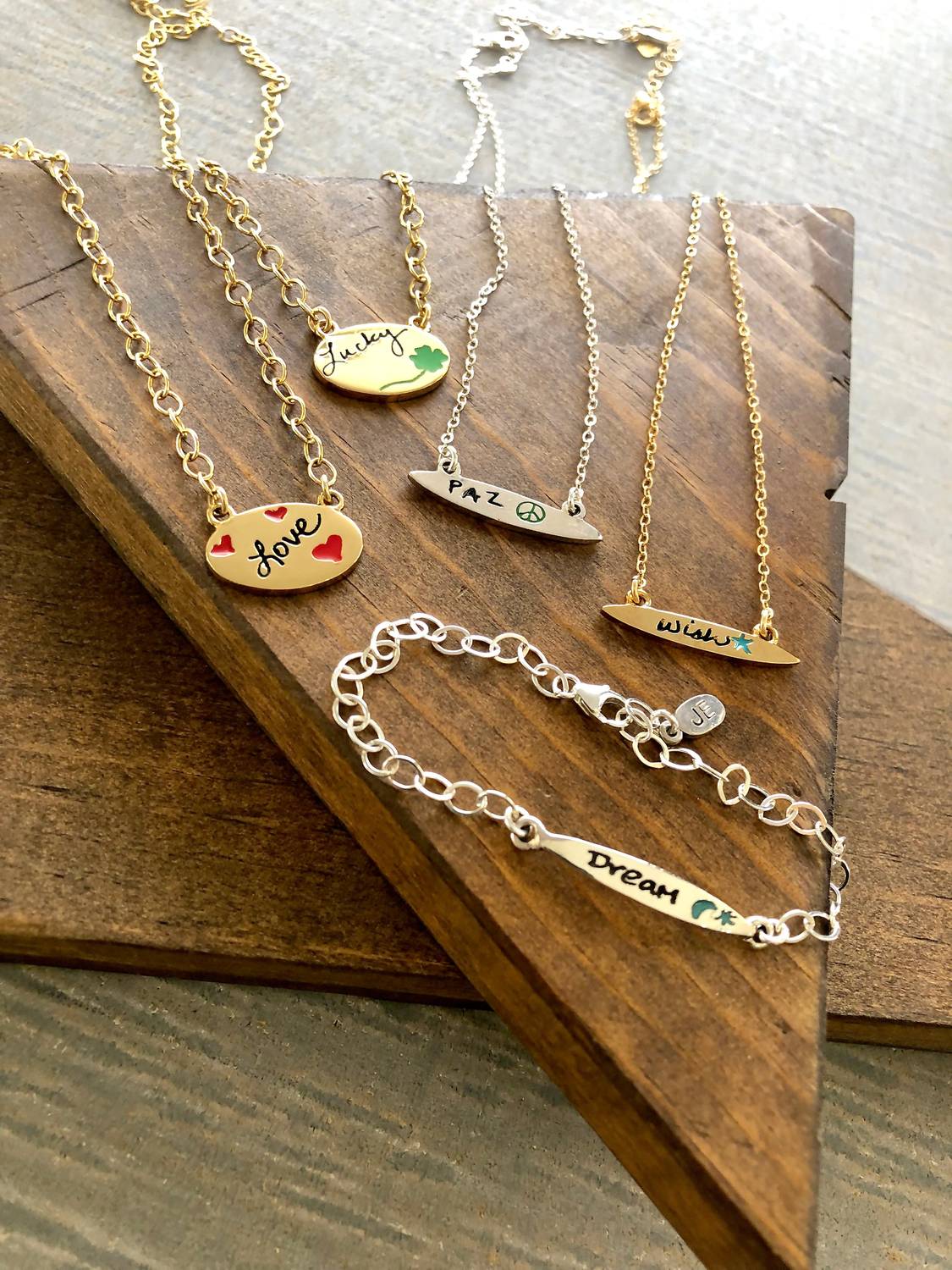 Made with sterling silver or 18K plated sterling silver. Adjustable chain length: 18 inches. Enamel design. Made in the USA.