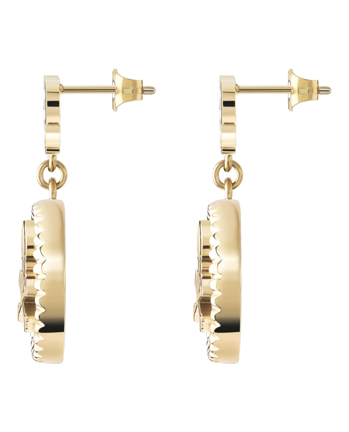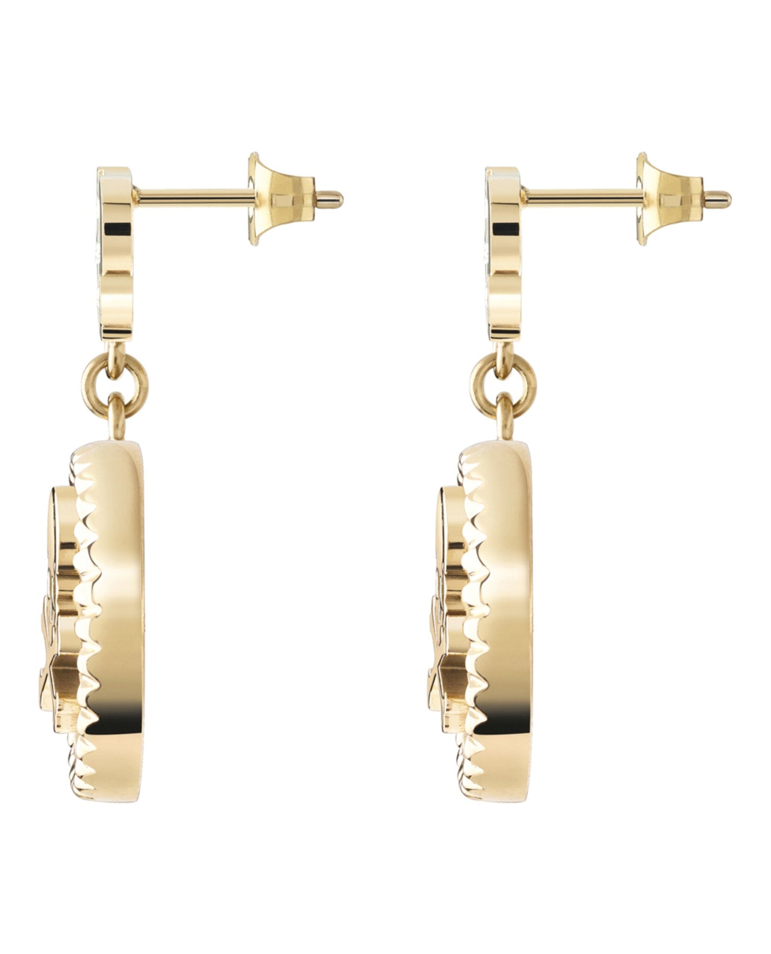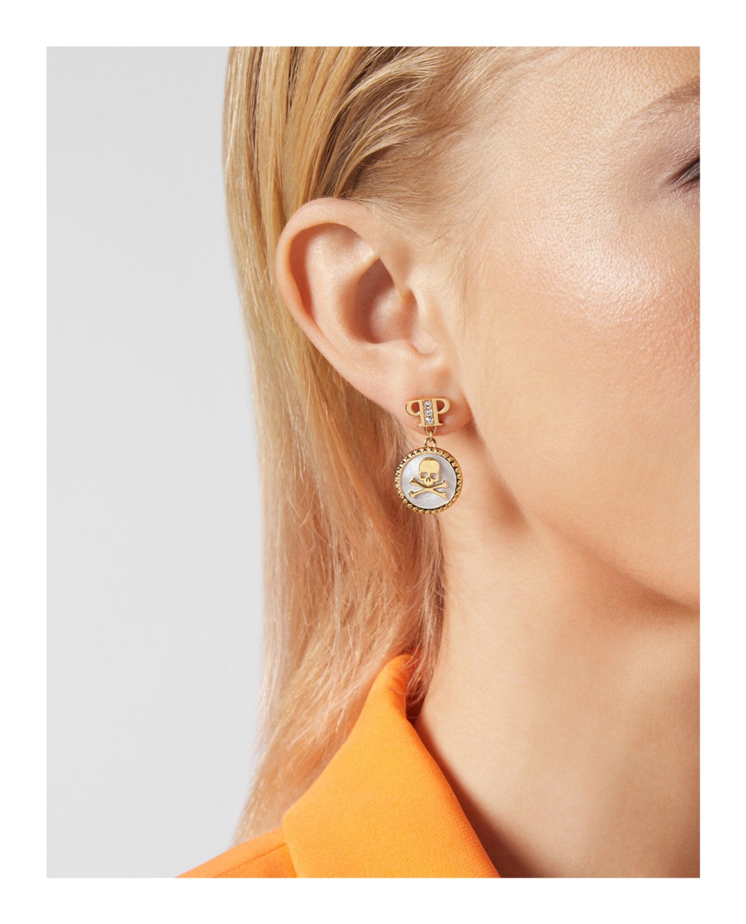 These Plein Mini Logo Crystal Dangle Earrings by Philipp Plein: These stylish earrings feature a mini logo charm embellished with Preciosa crystals, offering a touch of sparkle and sophistication. With their elegant design and push-back closure, they are perfect for adding a luxurious touch to any look.