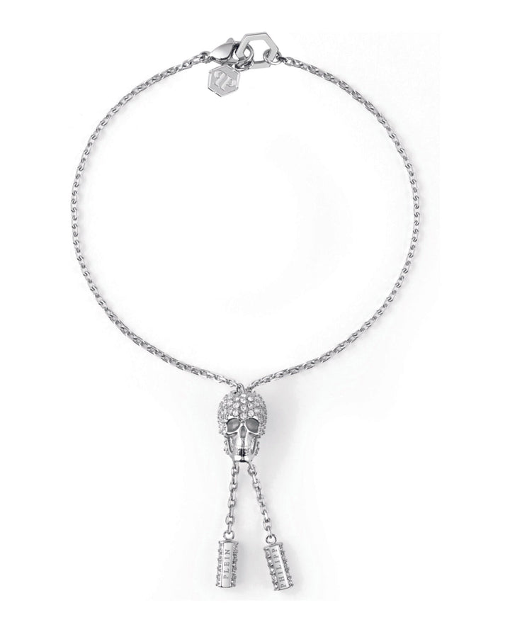 This Sliding Skull Crystal Cable Chain Bracelet by Philipp Plein adds an edgy touch to any outfit. Featuring 129 Preciosa crystals set in a stainless steel cable chain, this bracelet is both stylish and comfortable. The sliding design allows for adjustable fit, making it versatile and easy to wear.