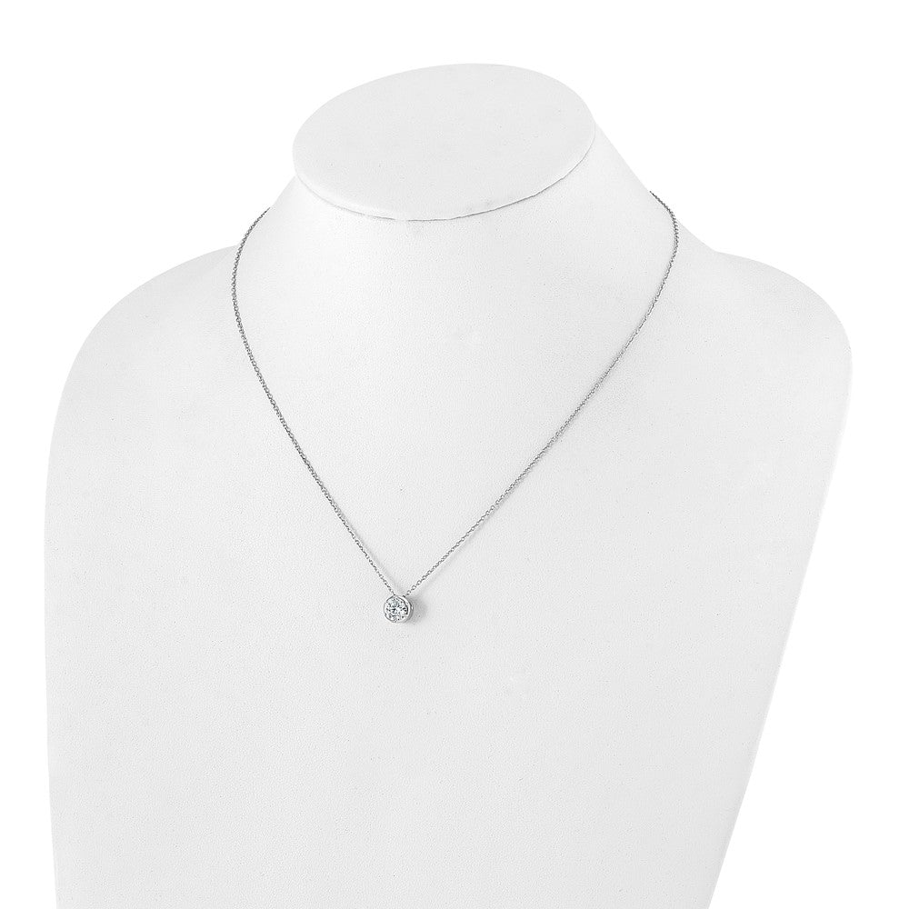Crafted in 14K white gold with a 1ct round lab-grown diamond, VS clarity, D-E color. Pendant slides on an 18' chain with a lobster clasp.