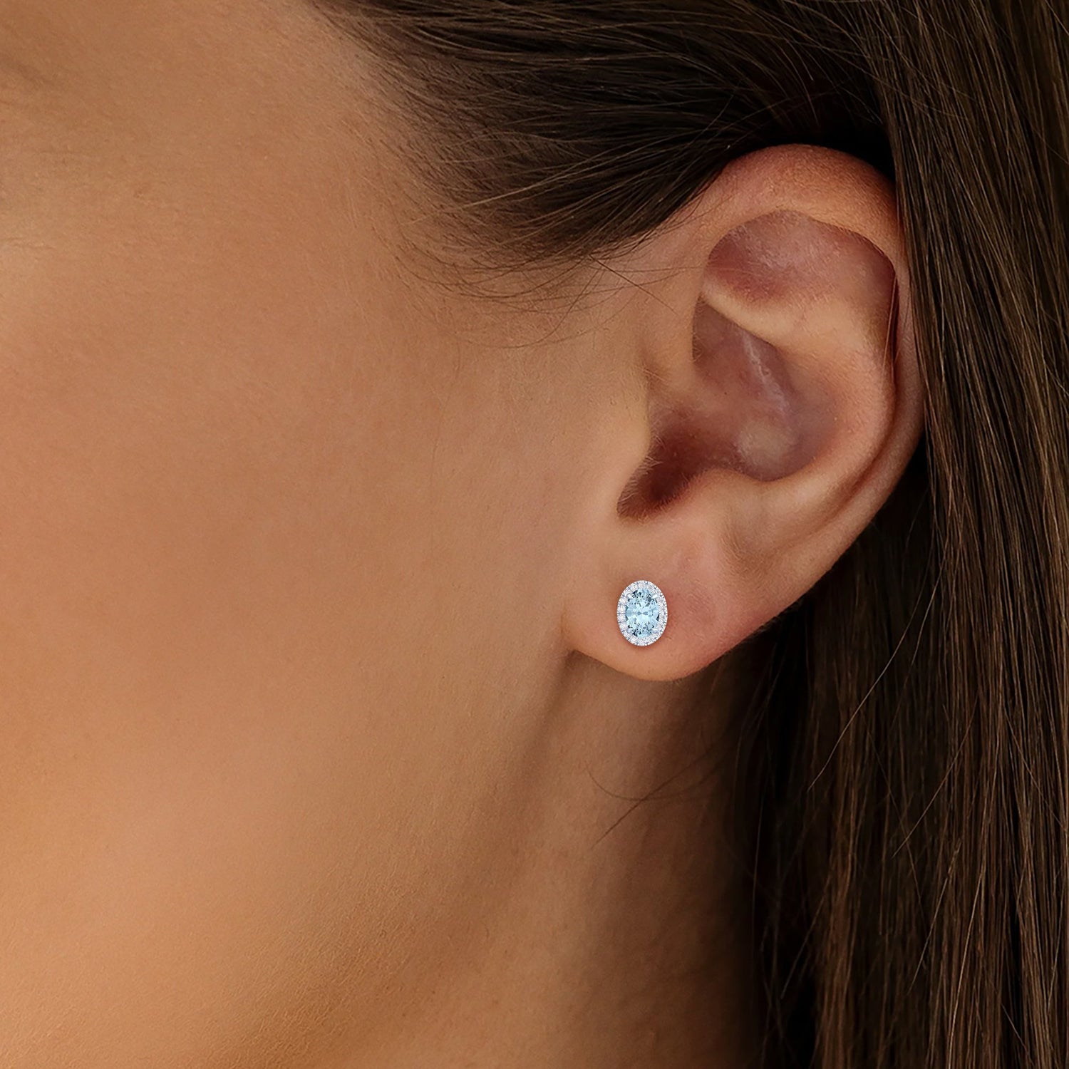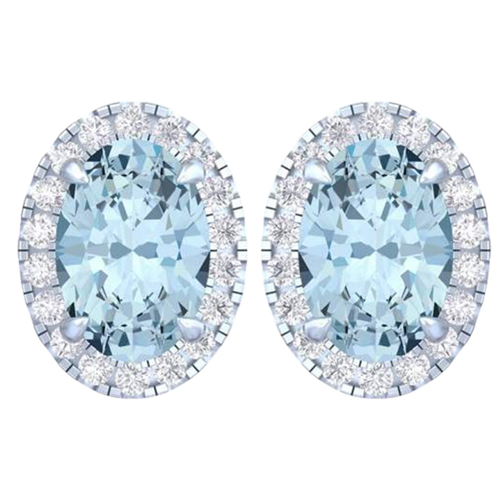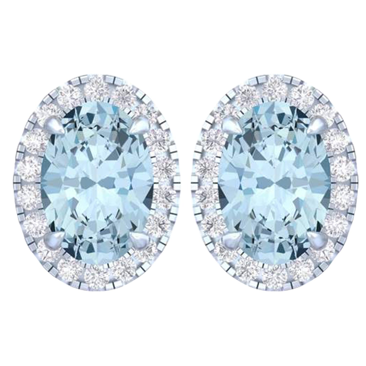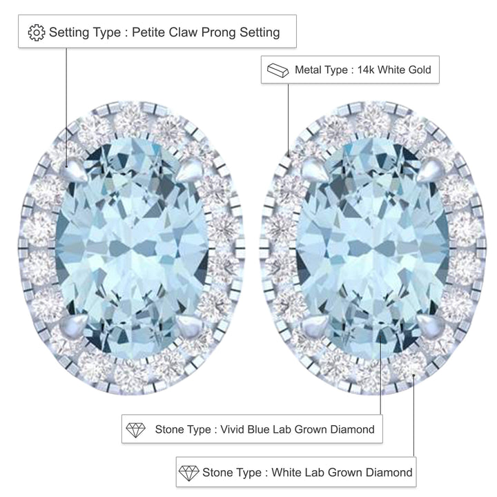 14k White Gold Vivid Blue Oval Cut 3.60 CT Lab-grown Diamond Halo Stud Earrings