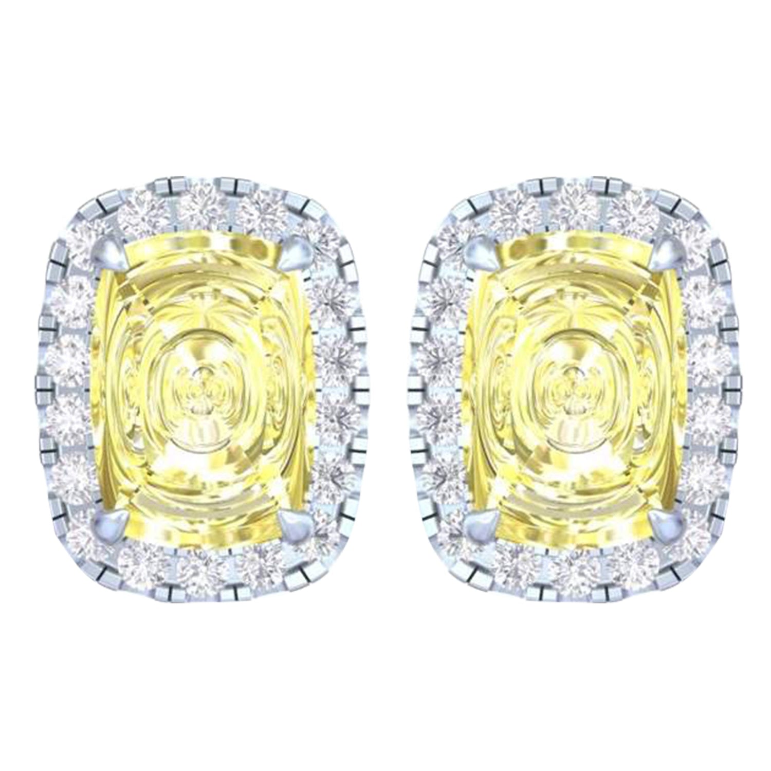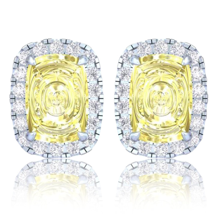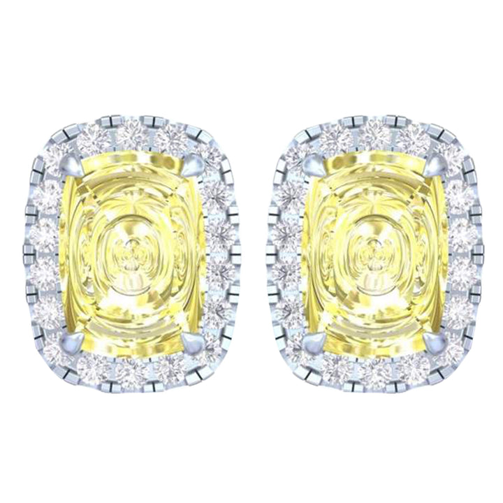 These 14K White Gold Vivid Yellow Cushion Cut 4.30 CT Lab-grown Diamond Halo Stud Earrings by Diamond2Deal are a stunning and vibrant choice, with yellow cushion-cut diamonds set in a halo of smaller diamonds, perfect for making a bold statement.