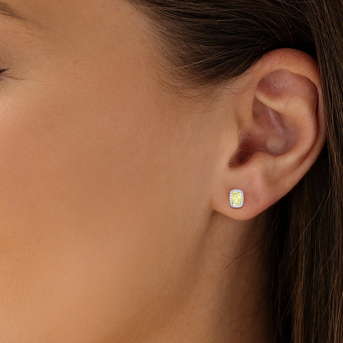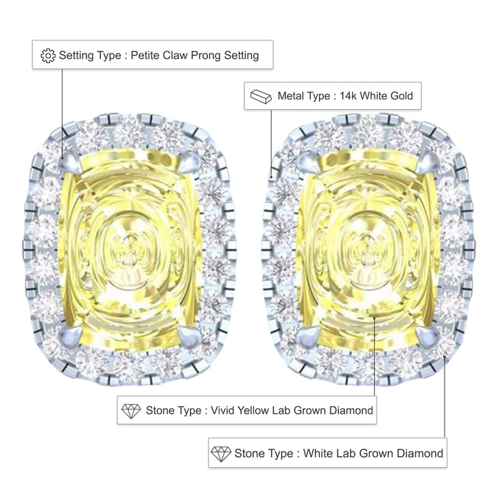 14k White Gold Vivid Yellow Cushion Cut 4.30 CT Lab-grown Diamond Halo Stud Earrings