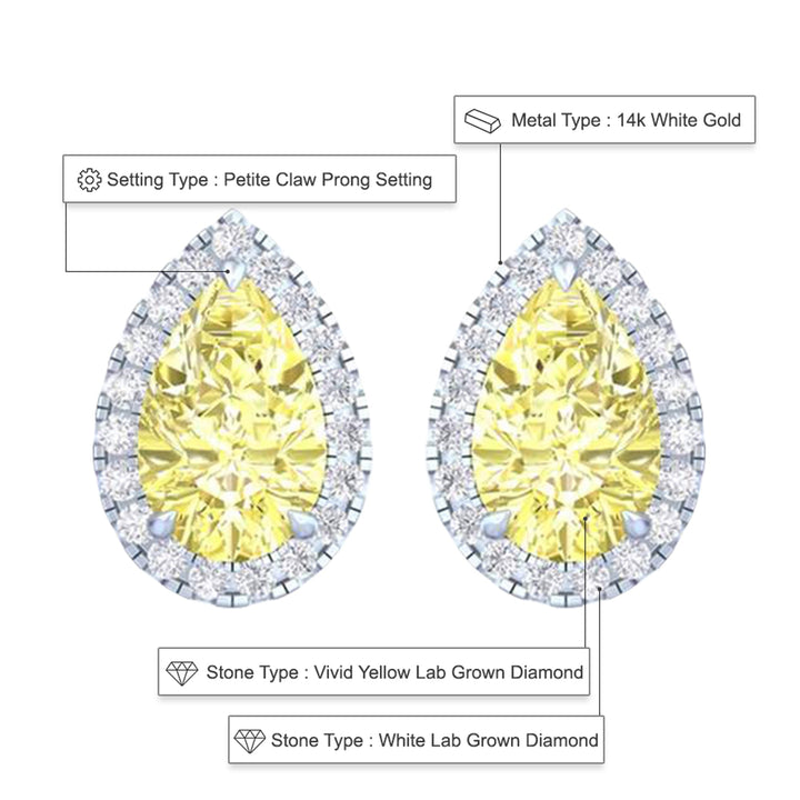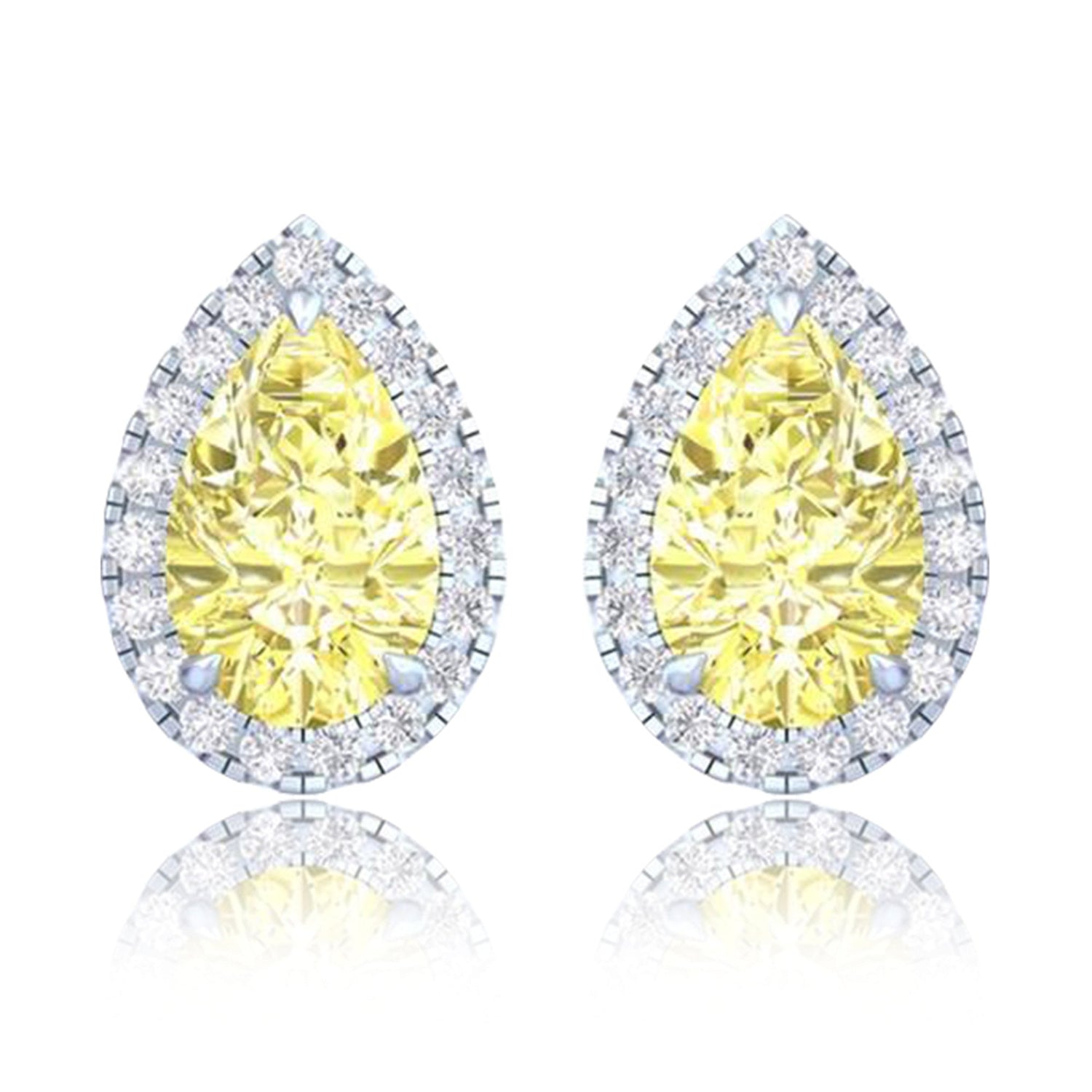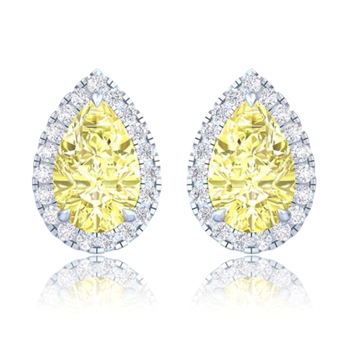 14k White Gold Vivid Yellow Pear Cut 4.10 CT Lab-grown Diamond Halo Stud Earrings