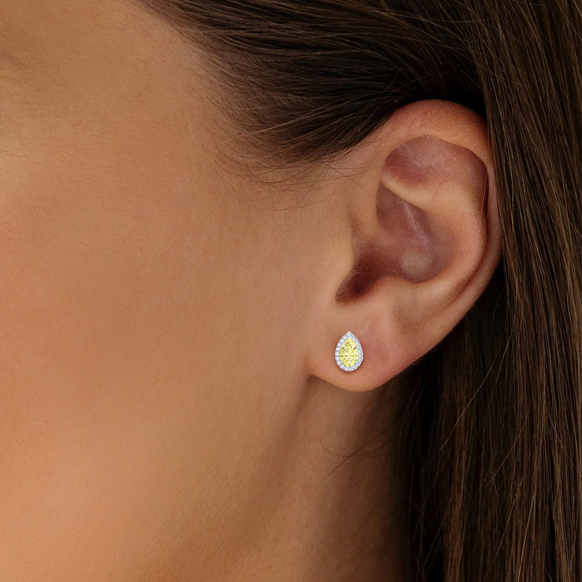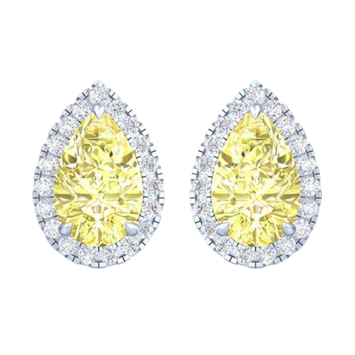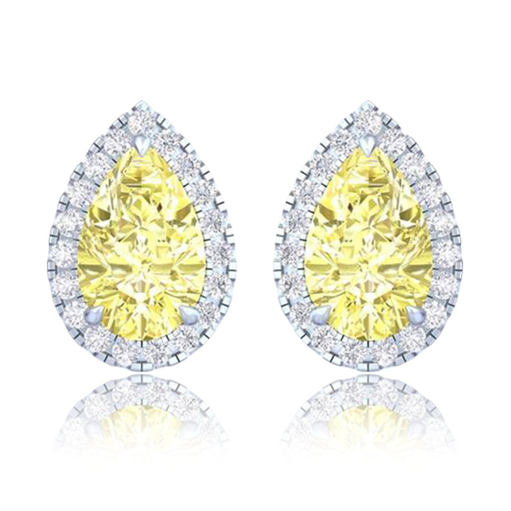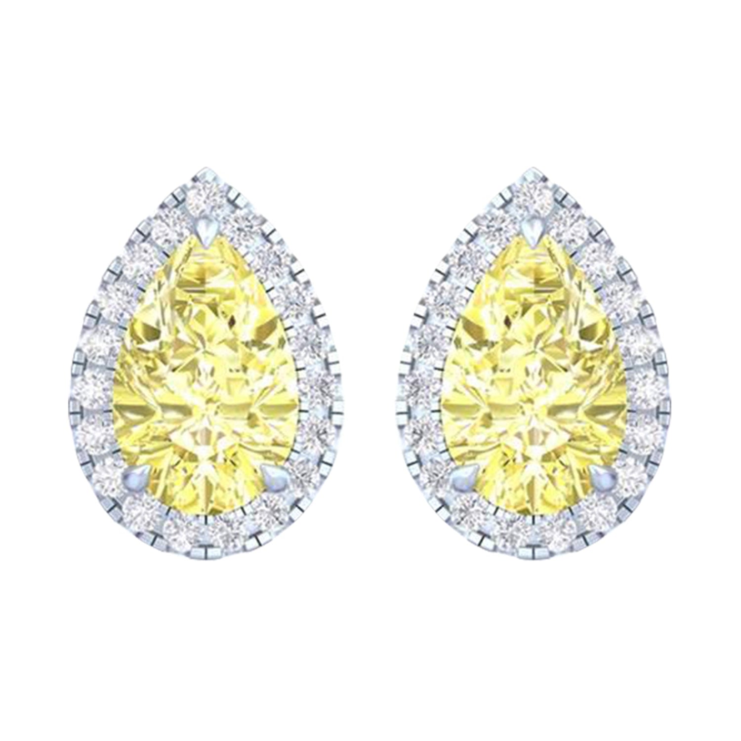 14k White Gold Vivid Yellow Pear Cut 4.10 CT Lab-grown Diamond Halo Stud Earrings