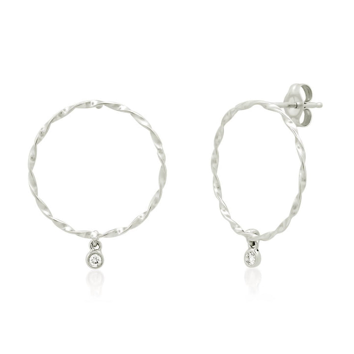These 14K Twisted Hoop Earring in White Gold/Diamond by Elliot Young: These elegant twisted hoop earrings feature a delicate bezel set tiny diamond (approx. 2mm), creating a sophisticated and timeless design. The perfect combination of gold and diamond, these earrings offer a subtle sparkle that complements any look.