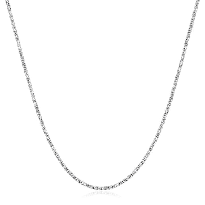 This 7ct TW Diamond Tennis Necklace 4-prong 14k White Gold 16.5" by Pompeii3 is a high-quality, timeless piece that features round brilliant cut lab-grown diamonds set in solid 14K white gold. It’s perfect for adding sparkle to any ensemble.