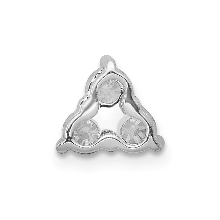 This 14K White Gold Lab Grown Diamond 3-Stone Triangle Pendant by Diamond2Deal features three stunning diamonds in a triangle formation, symbolizing the past, present, and future. With 0.51ct of lab-grown diamonds set in 14K white gold, this pendant is both a symbolic and elegant addition to any jewelry collection.