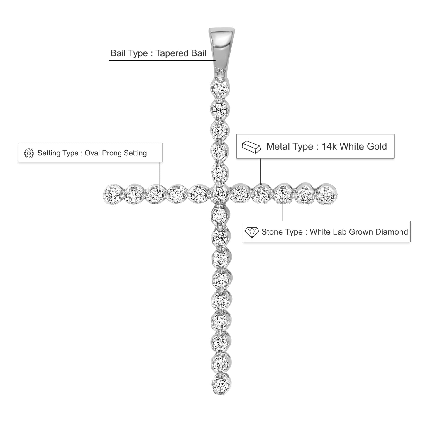 14K White Gold Lab Grown Diamond Cross Pendant (0.25ct VS G-H)